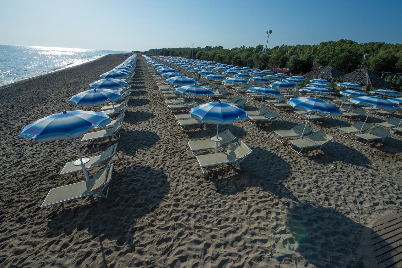 La spiaggia interamente di sabbia dista circa 150 metri dalla struttura, ed è raggiungibile attraverso un sentiero ombreggiato.