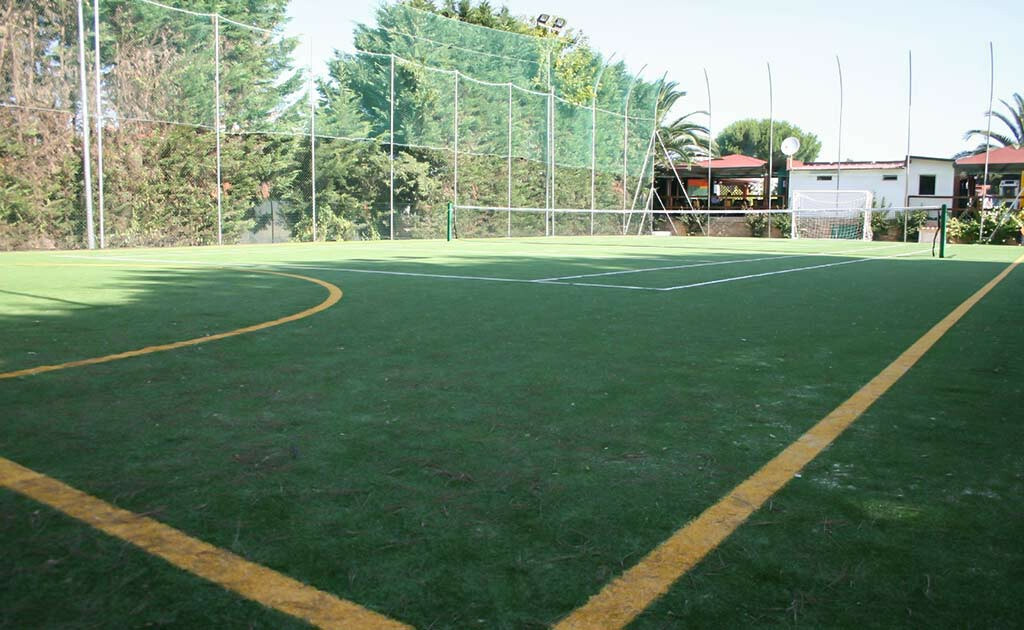Qui troverai il campo polivalente tennis/calcetto/pallavolo in erba sintetica illuminato.