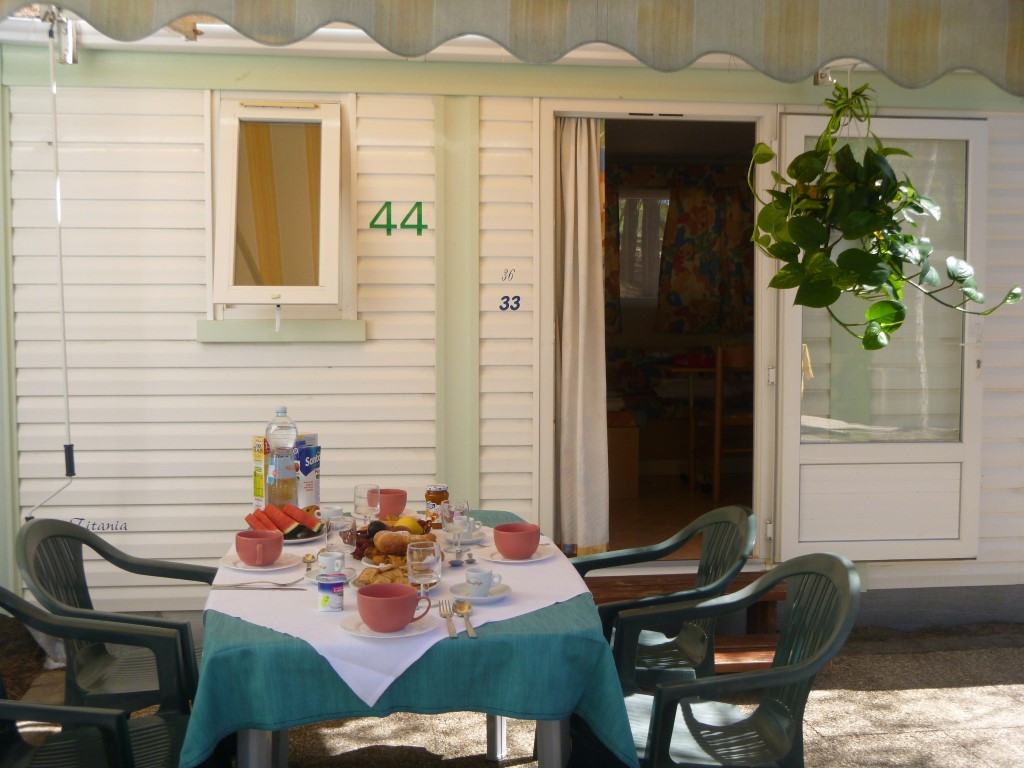 Il bungalow di circa 28 mq può ospitare fino ad un massimo di 4 persone, è composto da una camera matrimoniale e una camera con letto a castello. Il soggiorno abitabile con tavolo e sedie e cucina.