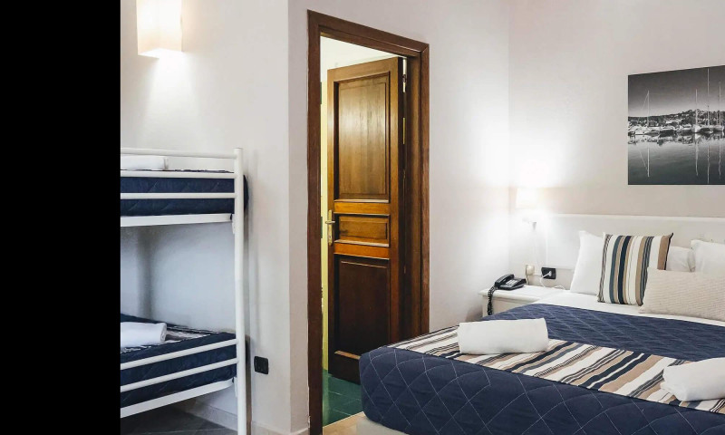 Questa camera può essere posizionata sia al piano terra che al primo piano, disponendo quindi o di un balcone o di un giardinetto privato. In entrambi i casi affacciano sullo spettacolare scorcio dell'Isola de La Maddalena.