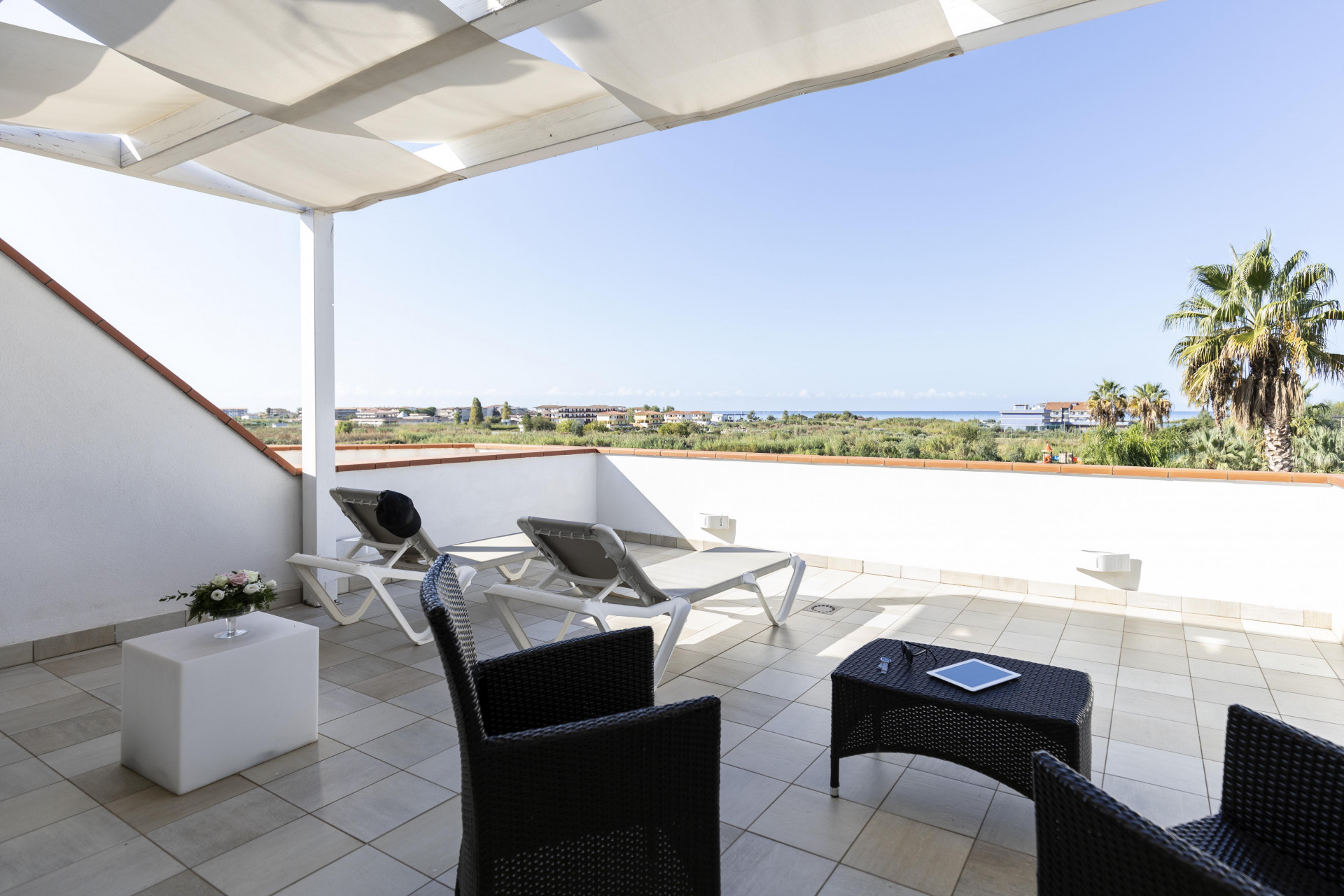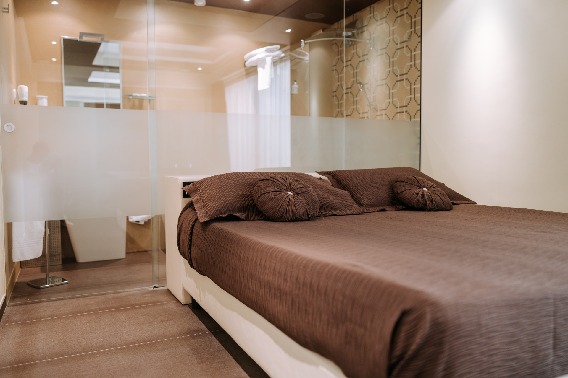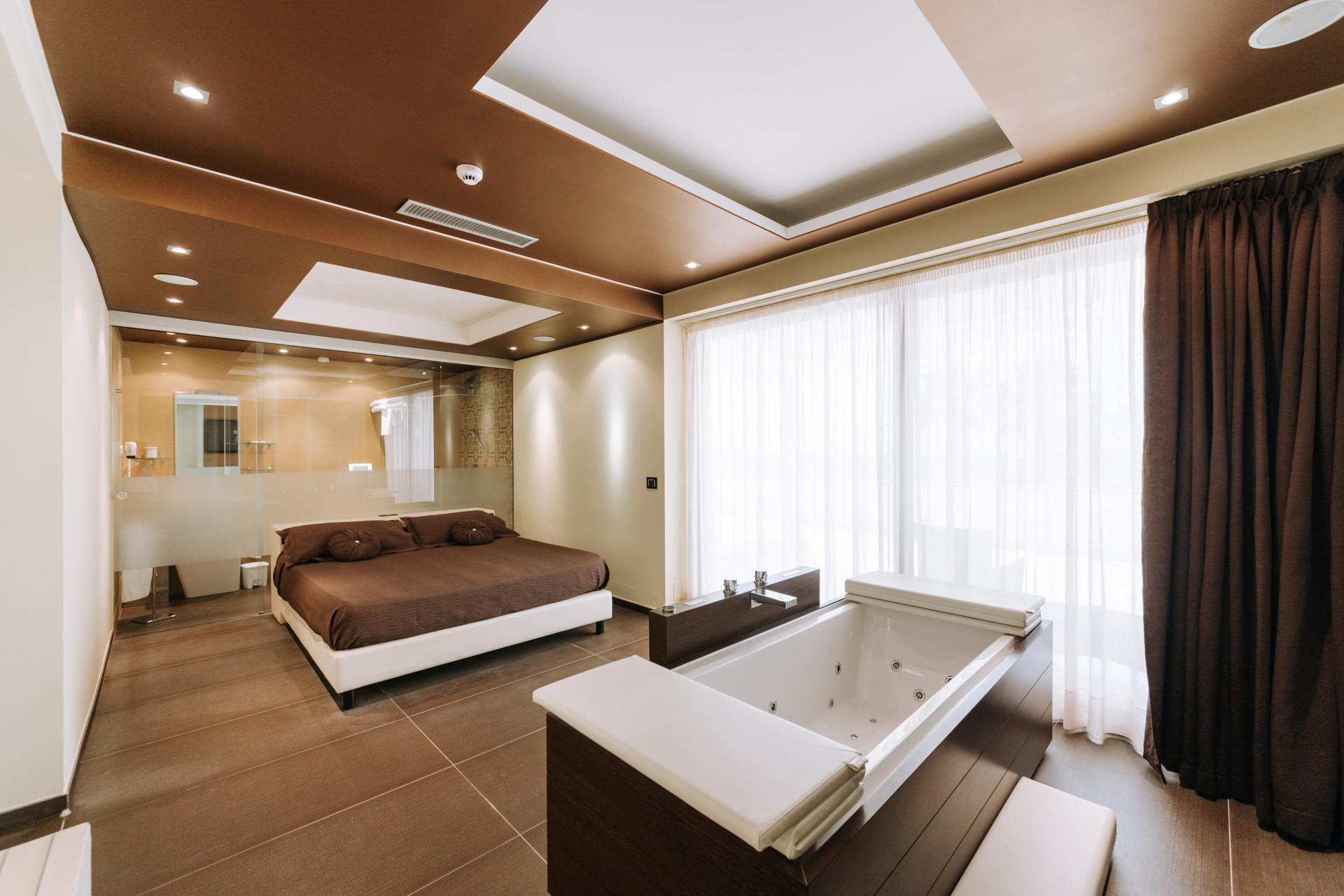 Le suite sono ideali per coppie, dotate di vasca idromassaggio interna e mini piscina jacuzzi esterna per 4 persone, un bagno con doccia idromassaggio e una TV Led.