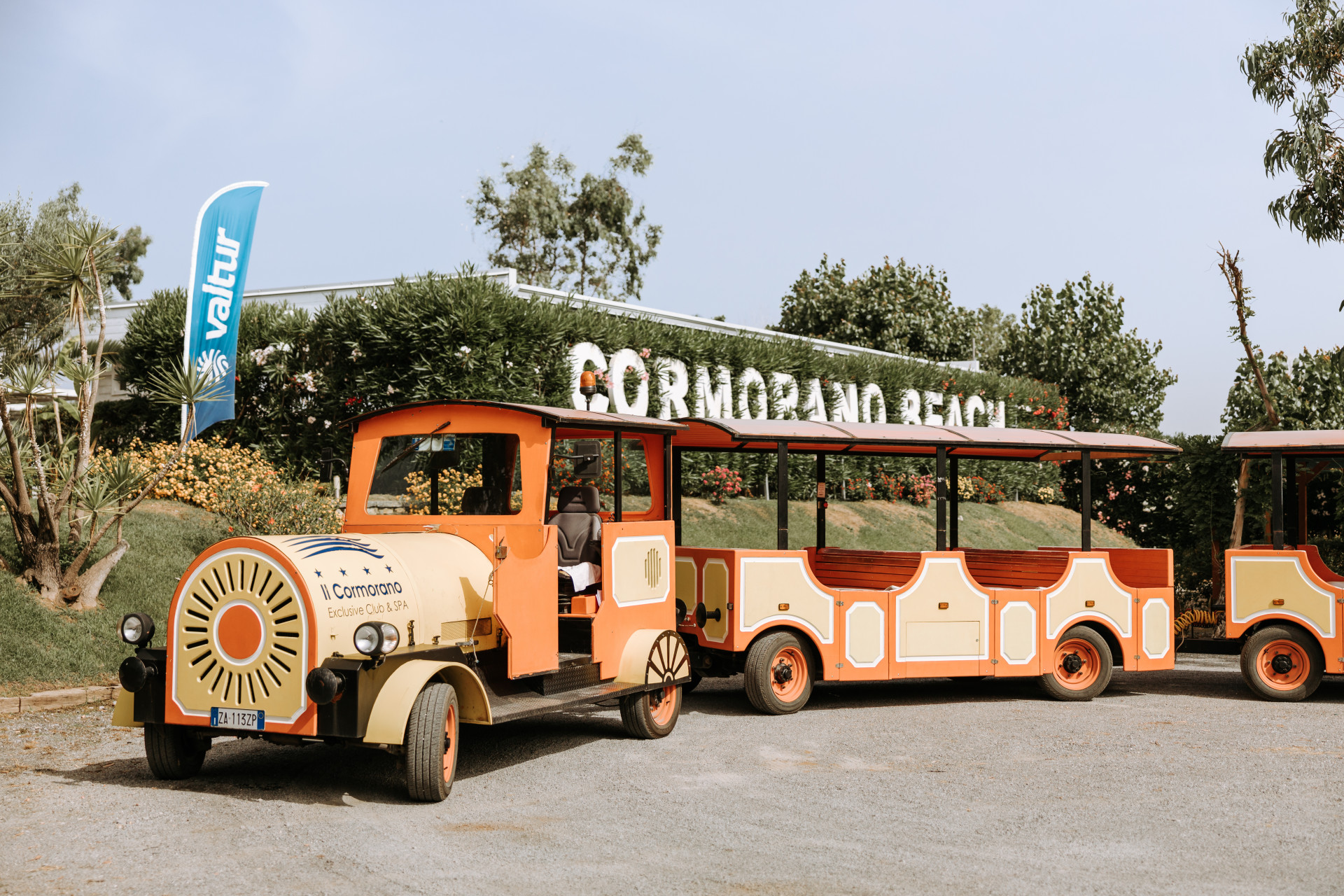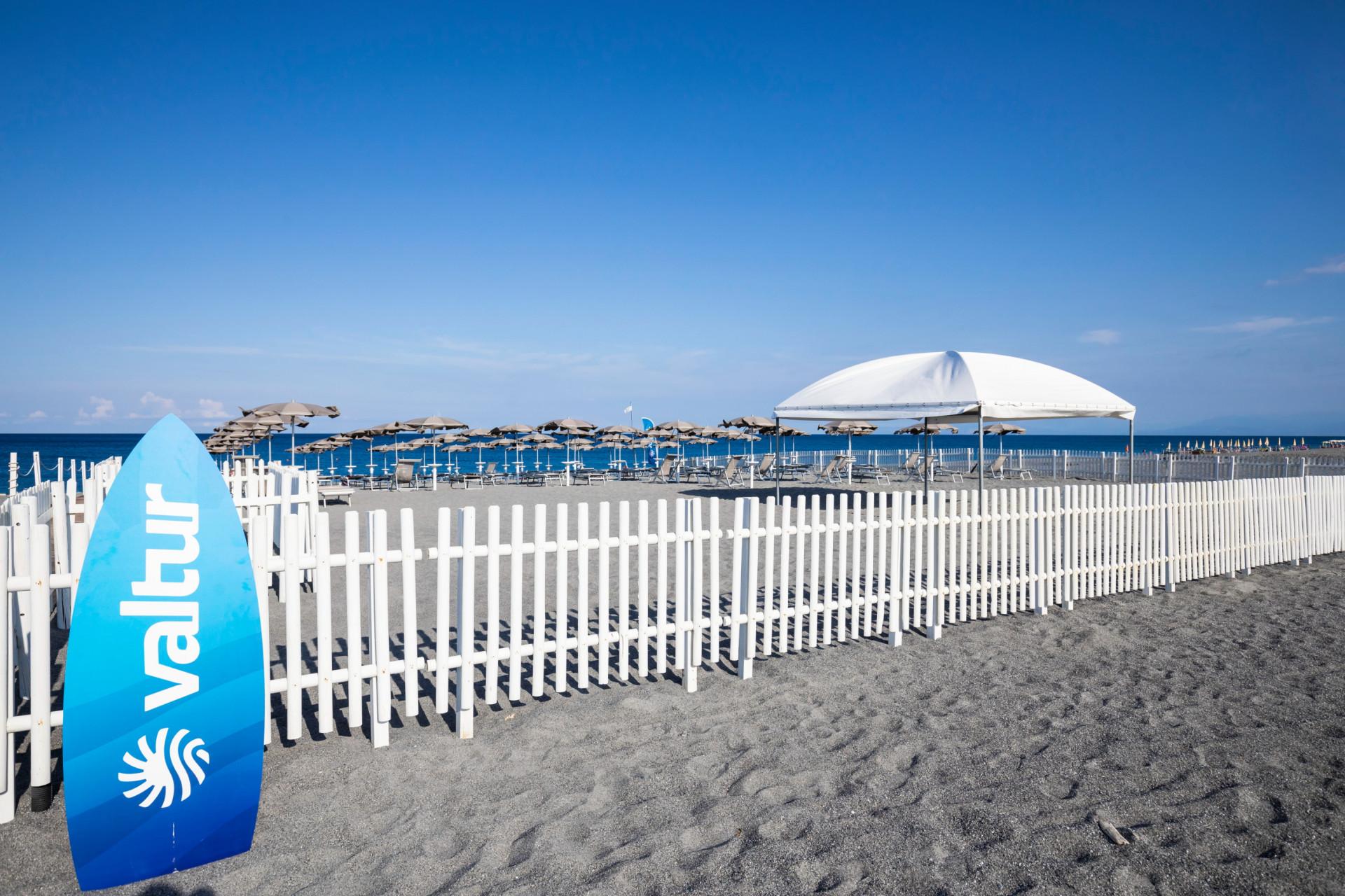 La splendida spiaggia, riservata esclusivamente agli ospiti del villaggio, dista solo circa 500 metri dalla struttura ed offre un ampio tratto di sabbia e ghiaia. Qui troverete comodità come ombrelloni, lettini e un'accogliente chiosco bar, oltre a un ristorante con servizio a buffet. Potrete raggiungere la spiaggia facilmente a piedi attraverso un sottopasso stradale o con il comodo trenino che parte regolarmente dalle 8:00 alle 19:30.