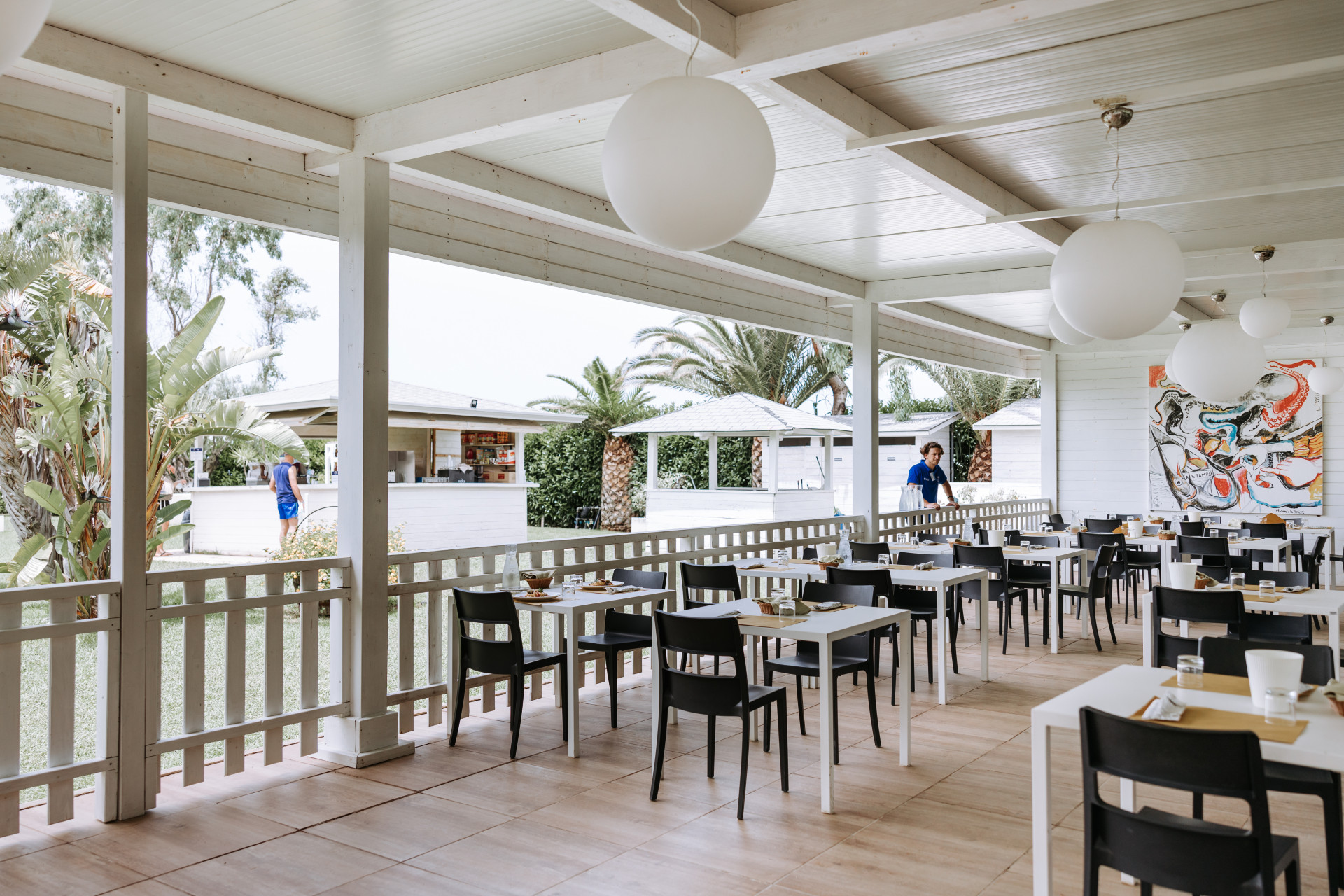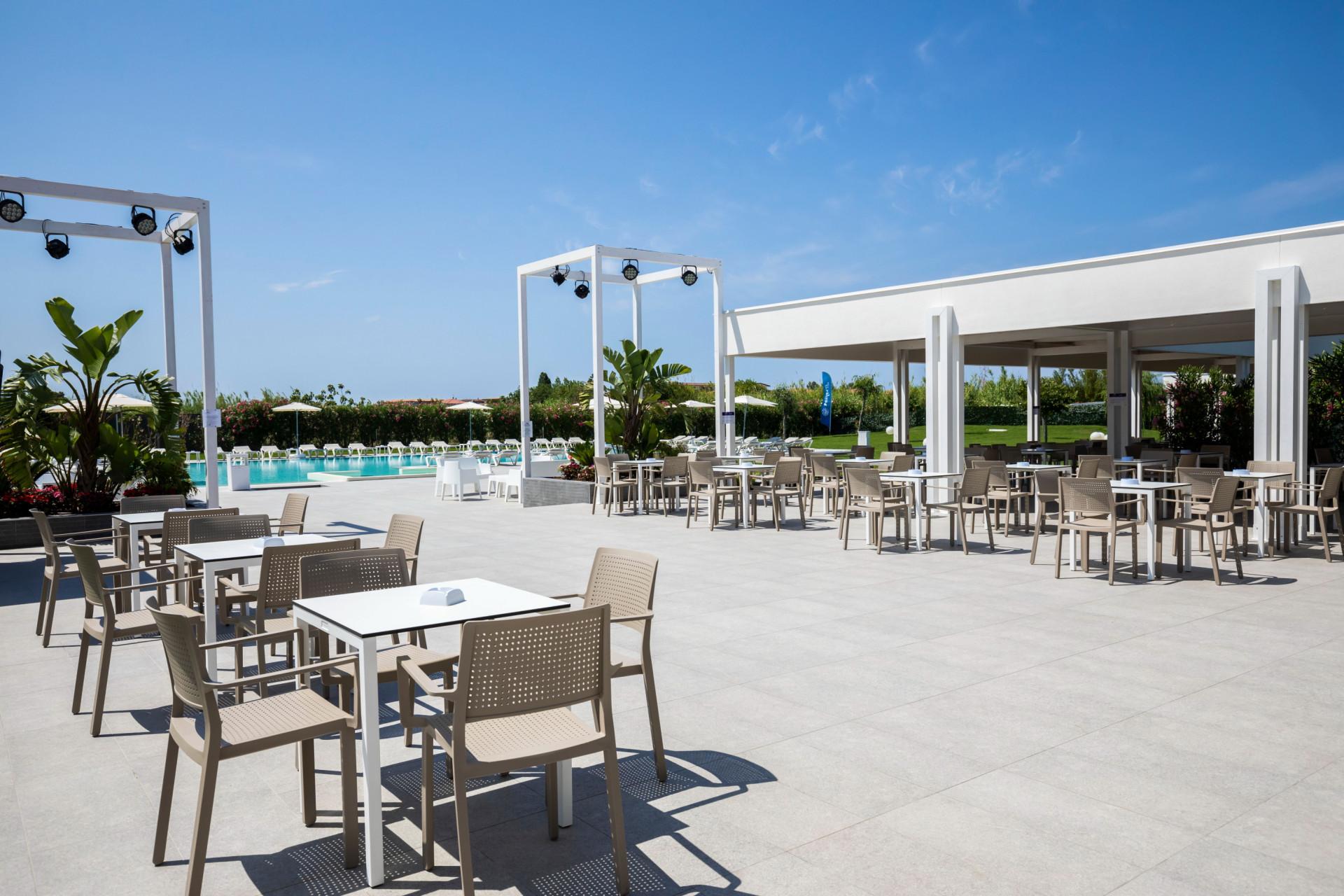 Presso il bar piscina, dalle 09:00 alle 23:00, e presso il bar sulla spiaggia durante gli orari di apertura, gli ospiti possono godere di una vasta selezione di bevande illimitate, tra cui soft drink (acqua, aranciata, cola, tonica), birra alla spina, caffetteria espressa da dispenser, tè freddo in caraffa, granite in due gusti, e alcune bevande alcoliche (tra cui un amaro locale e un liquore al cedro).