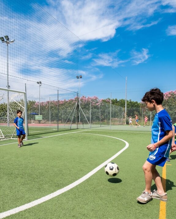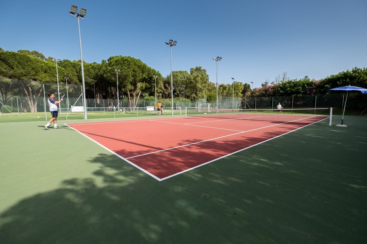 Gli spazi sportivi, immersi nella pineta, permettono di praticare attività all’aria aperta in un contesto naturale e rilassante. Sono disponibili campi da calcetto, un campo polivalente per basket e pallavolo, quattro campi da tennis, due campi da bocce, ping-pong e un percorso jogging che si snoda nel verde. I campi restano utilizzabili anche in orario serale grazie all’illuminazione dedicata.