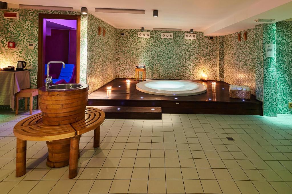 Per tutti gli ospiti in Trattamento di All Inclusive è previsto un ingresso alla zona umida del centro benessere e utilizzo di Jacuzzi, biosauna, doccia scozzese, bagno turco, docce emozionali, 3 distinte zone relax con aroma e cromo terapia (max 60').