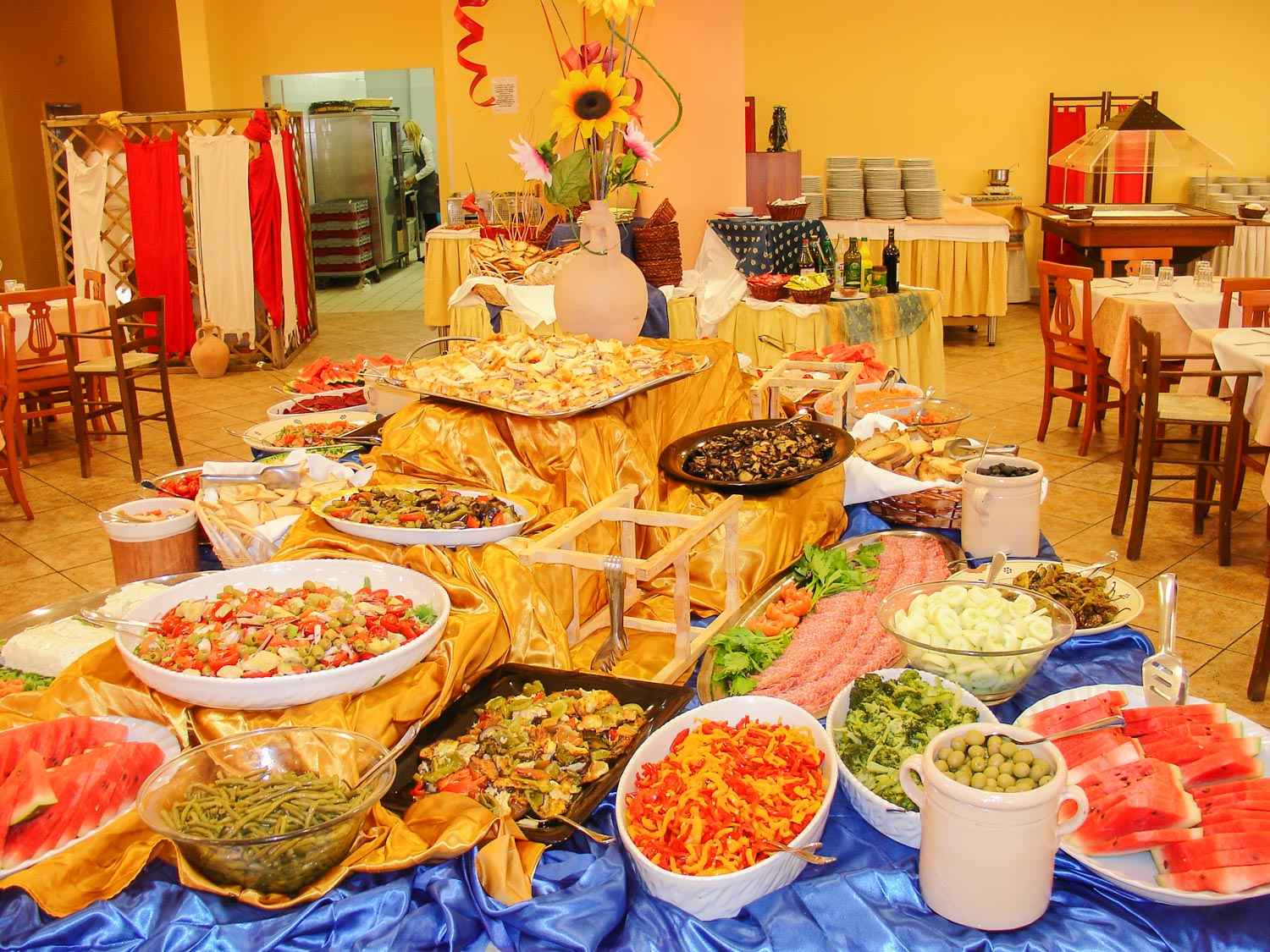 La pensione completa include pasti a buffet con acqua, vino, birra, cola, aranciata e gassosa disponibili in modalità self-service dagli erogatori.