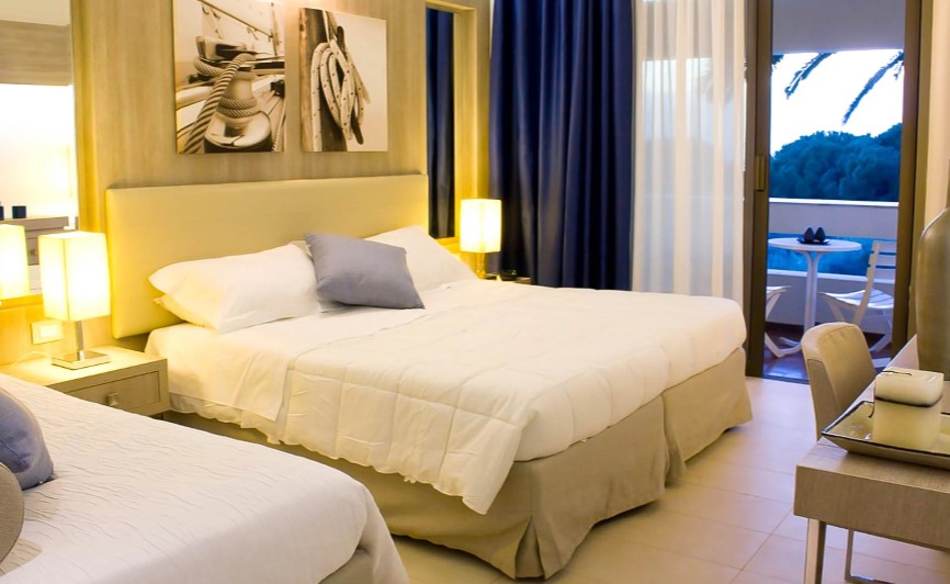 La spiaggia di sabbia fine, dista circa 800 metri dall'hotel, dove potrai raggiungerla facilmente a piedi attraversando dei sentieri interni all'hotel. La struttura metterà a tua disposizione un servizio navetta gratuito da/per la spiaggia.